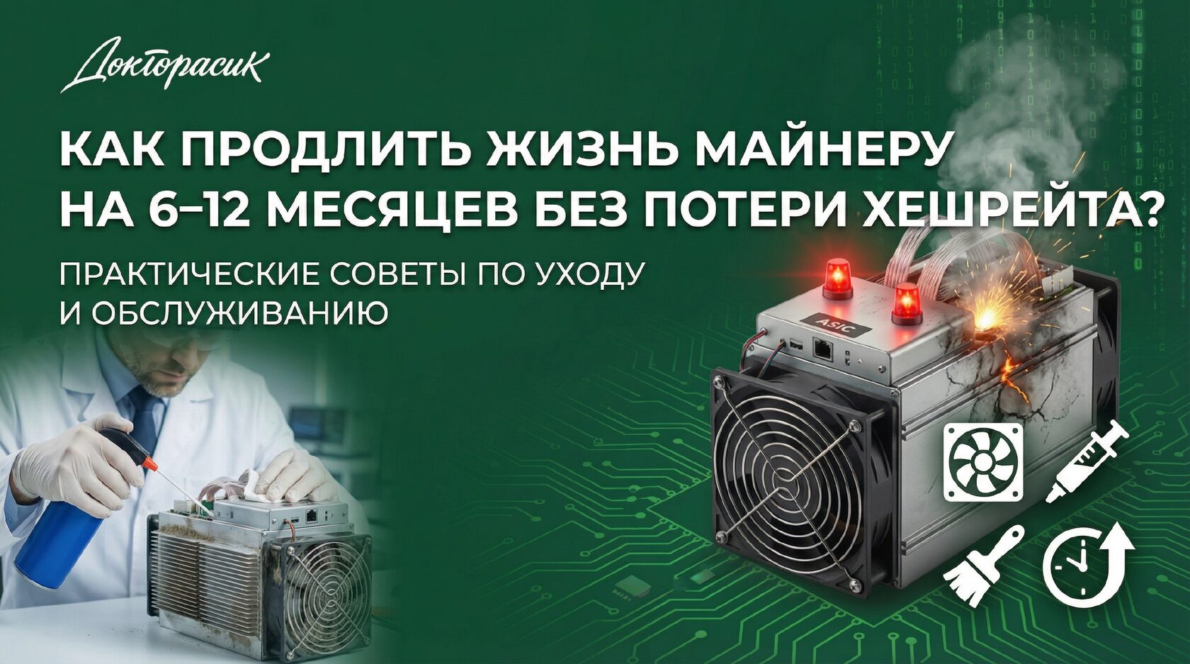 Продлить жизнь ASIC на 6–12 месяцев “без потери хешрейта” реально, если цель — не разгонять и не душить частоты, а убрать главные убийцы: перегрев, пыль, плохое питание и вибрации/износ вентиляторов. Ниже — практический чек‑лист от "Доктора Асик".